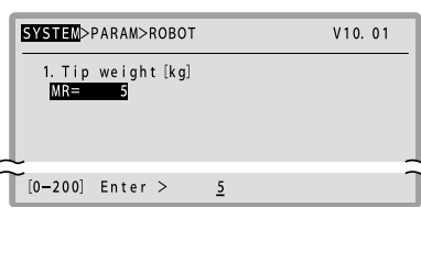 以 kg 為單位設置機器人前端重量(工件重量+工具重量)。