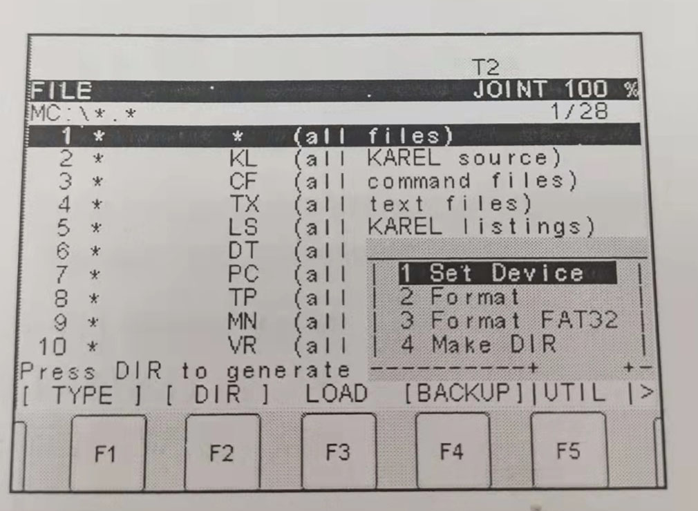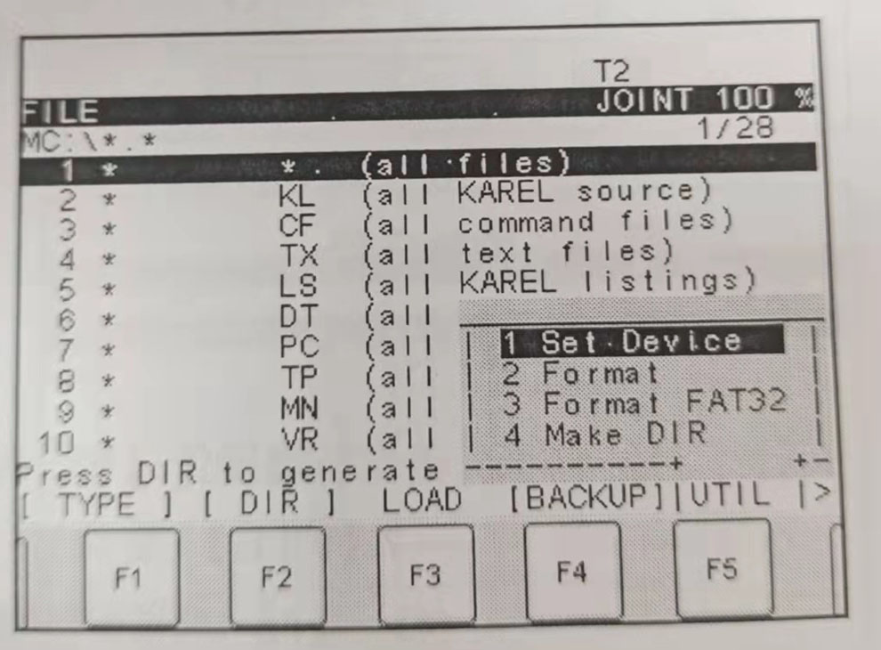 2. 移動光標選擇【Make DIR】(制作目錄),按【ENTER】(回車)鍵確認。