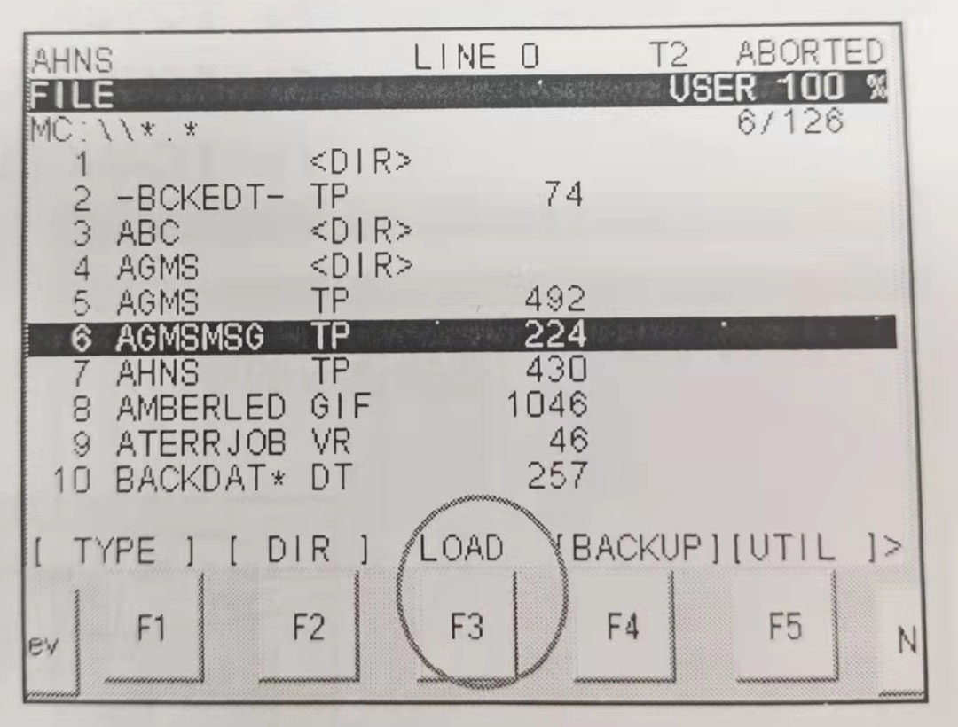 4. 移動光標,選擇要加載的文件,按 F3 【LOAD】(載入)