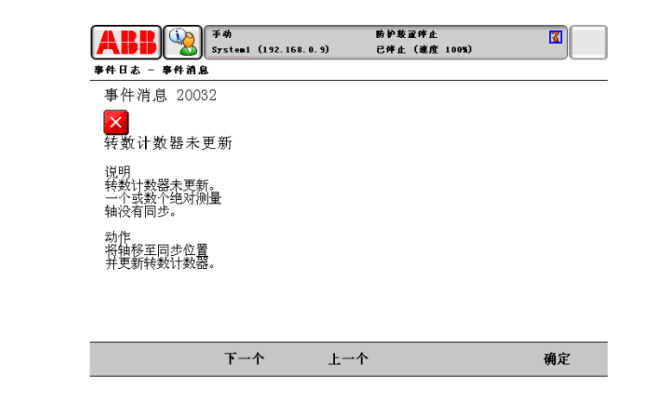 ABB機(jī)器人維修報(bào)警代碼20032(轉(zhuǎn)數(shù)計(jì)數(shù)器未更新)